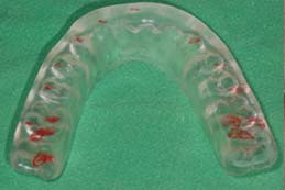咬合板治療是現今公認有效的輔助性治療!咬合板的材質是透明壓克力樹脂,質地比牙齒外層的珐瑯質還要軟;因而配戴後,當咬合板與牙齒對磨時,咬合板會先被磨耗,如此可避免對咬牙之珐瑯質的磨耗。換句話說,由咬合板來代替對咬的珐瑯質被磨耗。