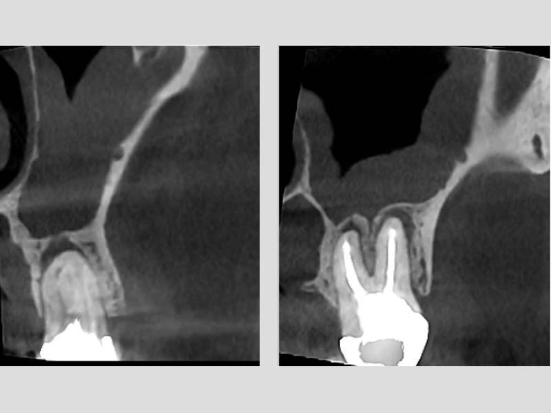 在診斷疾病時,有時傳統的x光影像並不能明確的判斷出鼻竇發炎,因此「電腦斷層」是必須的工具。除了牙醫師需要藉此判斷發炎的齒位,耳鼻喉科醫師也需要知道鼻竇發炎的範圍,決定是否要進行鼻竇手術。另一方面,在開始治療之前,牙醫師需要診斷牙齒感染的「病因」-包括像是牙周病、牙齒斷裂等等也會引起感染,但此時進行根管治療是沒有效果的!