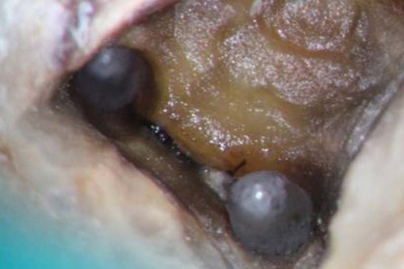 C.顯微鏡下兩個根管的之間的「死角」,肉眼難以察覺