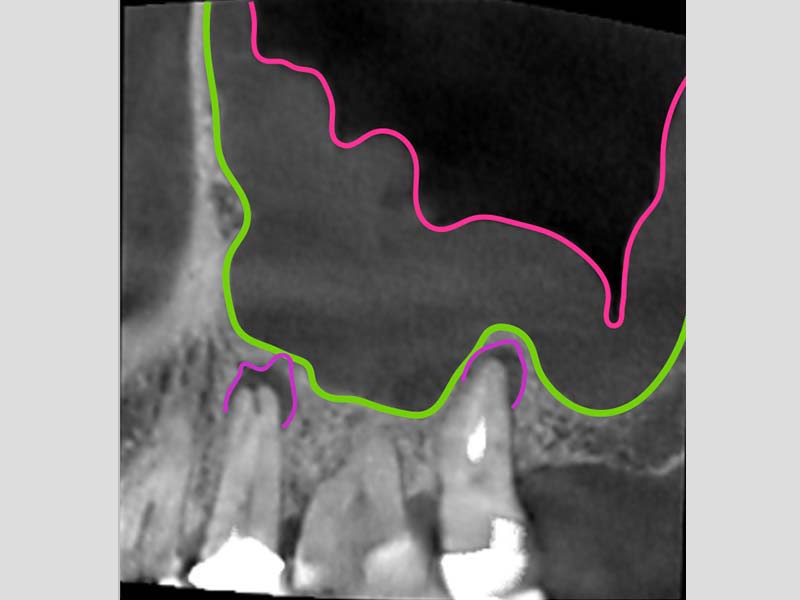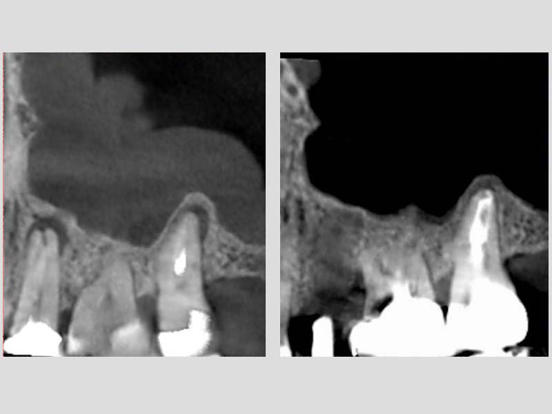 在診斷疾病時,有時傳統的x光影像並不能明確的判斷出鼻竇發炎,因此「電腦斷層」是必須的工具。除了牙醫師需要藉此判斷發炎的齒位,耳鼻喉科醫師也需要知道鼻竇發炎的範圍,決定是否要進行鼻竇手術。另一方面,在開始治療之前,牙醫師需要診斷牙齒感染的「病因」-包括像是牙周病、牙齒斷裂等等也會引起感染,但此時進行根管治療是沒有效果的!
