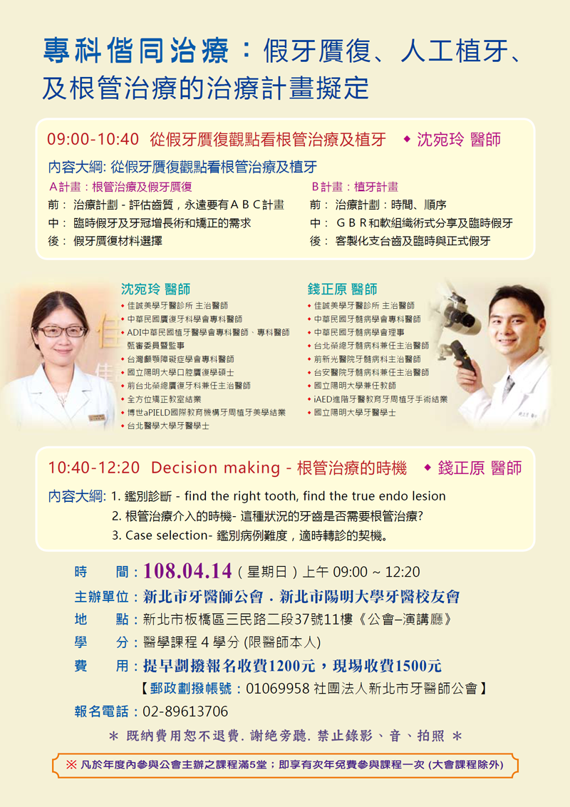 恭賀!!! 本院院長-沈宛玲醫師,攜手副院長-錢正原醫師,受邀新北市牙醫師公會演講!
