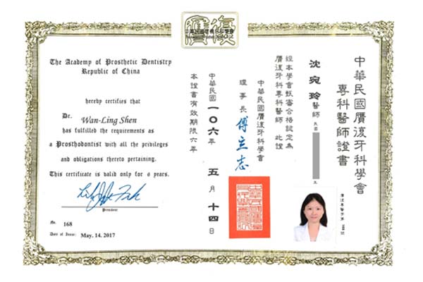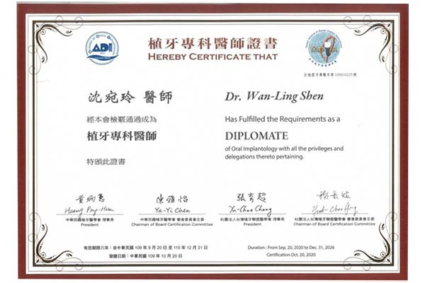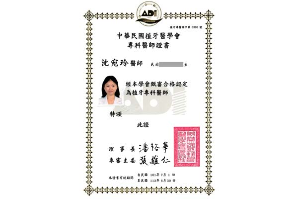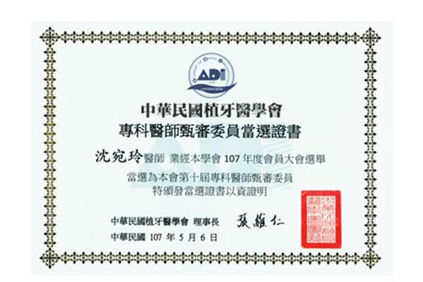 - ADI中華民國植牙醫學會專科醫師甄審委員暨理事